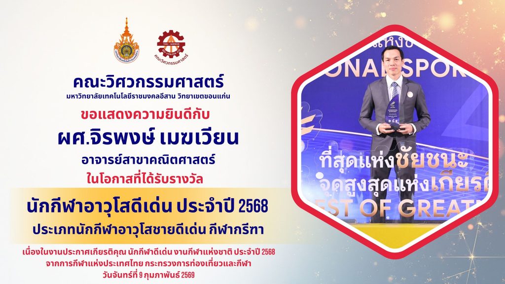 คณะวิศวกรรมศาสตร์ มหาวิทยาลัยเทคโนโลยีราชมงคลอีสาน วิทยาเขตขอนแก่นขอแสดงความยินดีกับ