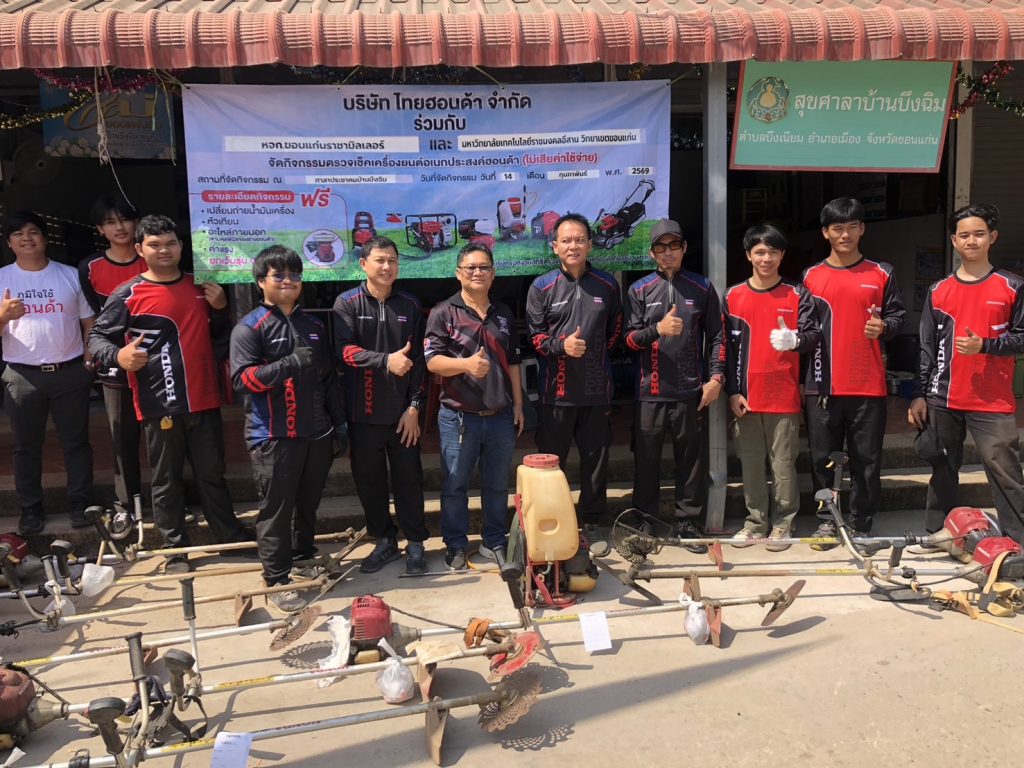 14 ก.พ.69: คณะวิศวกรรมศาสตร์ มหาวิทยาลัยเทคโนโลยีราชมงคลอีสาน วิทยาเขตขอนแก่น นำโดย อาจารย์เขมวัตร อินทรวิเศษ อาจารย์สาขาวิศวกรรมเครื่องกล นำนักศึกษาสาขาวิศวกรรมเครื่องกล ร่วมกับบริษัท ไทยฮอนด้า จำกัด และ หจก.ขอนแก่นราชามิลเลอร์ ลงพื้นที่บริการวิชาการซ่อมเครื่องมือและอุปกรณ์ทางการเกษตรแก่ประชาชน ณ ศาลาประชาคมบ้านบึงฉิม ต.บึงเนียม อ.เมืองขอนแก่น จ.ขอนแก่น