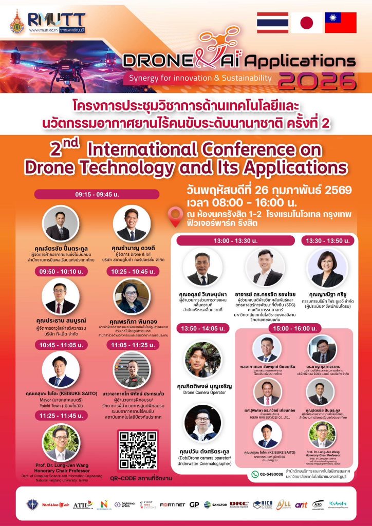 อาจารย์ ดร.ครรชิต รองไชย อาจารย์สาขาวิศวกรรมเครื่องกล / ผู้ช่วยคณบดีฝ่ายวิเทศน์สัมพันธ์และSDGs ร่วมในงานประชุมวิชาการระดับนานาชาติ2nd International Conference on Drone Technology and Its Applications ภายใต้แนวคิด “Drone & AI Applications: Synergy for Innovation and Sustainability” ในฐานะ Keynote Speaker เพื่อเผยแพร่ผลงานวิจัยและบริการวิชาการของคณะด้าน AI and Sustainability และร่วมขับเคลื่อนองค์ความรู้ในสาขานี้สู่เวทีวิชาการนานาชาติ จัดโดย มหาวิทยาลัยเทคโนโลยีราชมงคลธัญบุรี