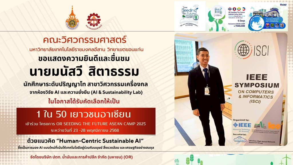 วันอาทิตย์ที่ 31 สิงหาคม พ.ศ. 2568 เวลา 9.30 น. ผศ.ดร.สุรเชษฐ์ ประวีณวงศ์วุฒิ ประธานกรรมาธิการการศึกษาการจัดทำและติดตามการบริหารงบประมาณ สภาผู้แทนราษฎร ลงพื้นที่ มทร.อีสาน วิทยาเขตขอนแก่น ติดตามการบริหารงบประมาณเพื่อการพัฒนาระบบขนส่งมวลชนรถไฟฟ้ารางเบาขอนแก่นโมเดล และการขับเคลื่อนเมืองจากความร่วมมือทุกภาคส่วน โดยมี นายพันธ์เทพ เสาโกศล รองผู้ว่าราชการจังหวัดขอนแก่น รศ.ดร.โฆษิต ศรีภูธร อธิการบดีมหาวิทยาลัยเทคโนลีราชมงคลอีสาน ผศ.ประพันธ์ ยาวระ รองอธิการบดีประจำวิทยาเขตขอนแก่น อาจารย์บุญกิจ อุ่นพิกุล ผู้ช่วยอธิการบดี ผศ.ดร.ศุภฤกษ์ ชามงคลประดิษฐ์ คณบดีคณะวิศวกรรมศาสตร์ อาจารย์ ดร.อารีรัตน์ เชื้อบุญเกิด โนท คณบดีคณะบริหารธุรกิจและเทคโนโลยีสารสนเทศ ผศ.ดร.วิรัช ชินพลอย คณบดีคณะครุศาสตร์อุตสาหกรรม คณะผู้บริหาร หัวหน้าส่วนราชการ เครือข่ายภาคเอกชน และหน่วยงานที่เกี่ยวข้องเข้าร่วมประชุมเพื่อให้ข้อมูล ข้อเท็จจริง รวมถึงแลกเปลี่ยนความคิดเห็นร่วมกัน ณ ห้องประชุมไพศาล ห์ลีละเมียร อาคาร 50 ปี เทคนิค ไทย – เยอรมัน ขอนแก่น